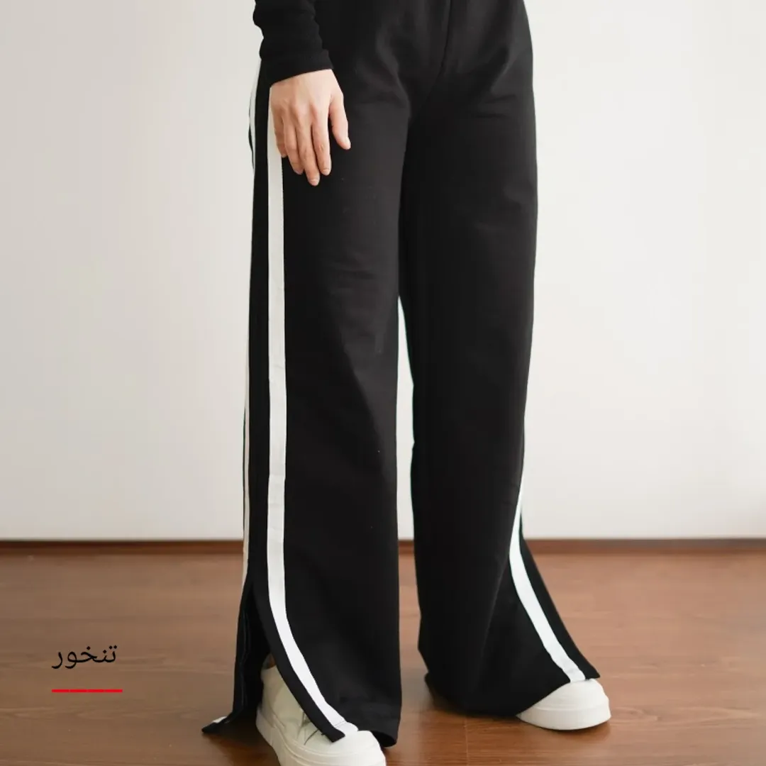 شلوار راسته چاکدار نواردوزی سوپر مشکی زنانه جنس گلکسی
