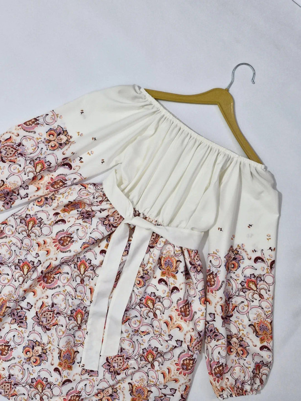 جزئیات : بدون آبرفت، یقه قایقی، آستین بلند، دامن طبقه ای