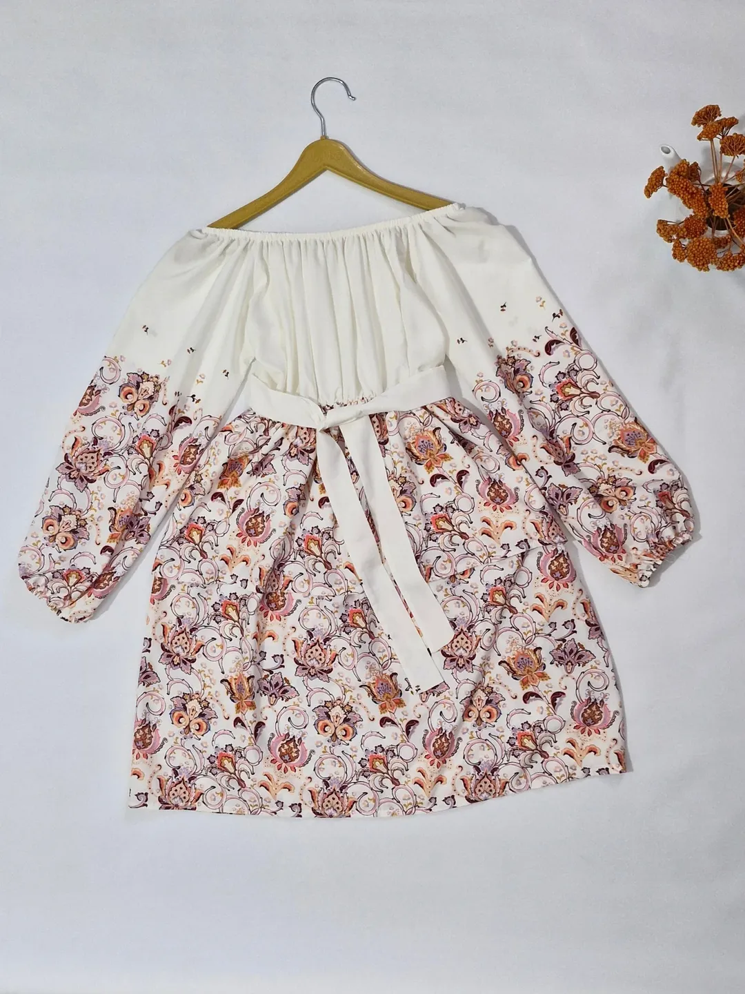 پیراهن ساحلی کوتاه آستین بلند زنانه طرح سنتی با دامن دوطبقه