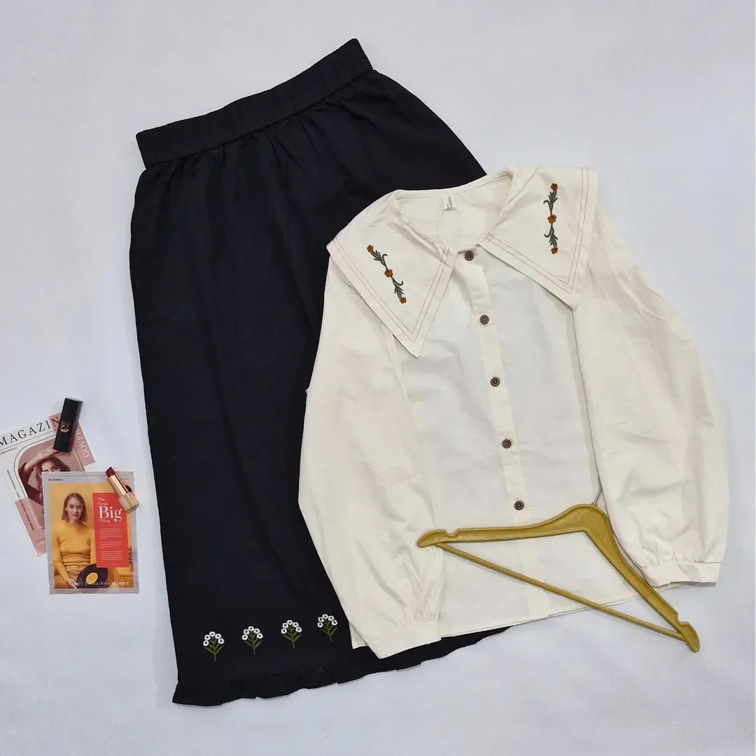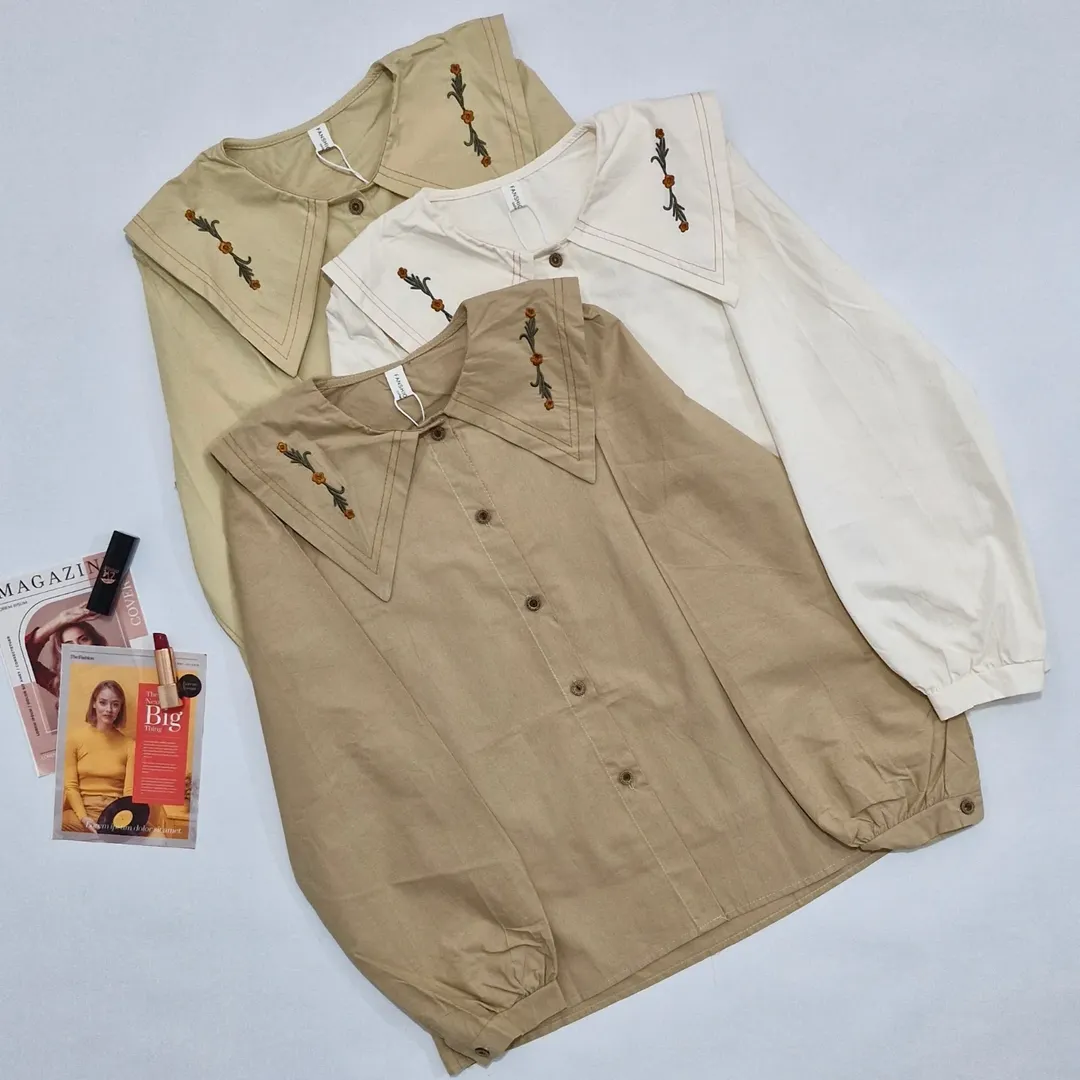 شومیز کتان گلدوزی دخترانه فری سایز وارداتی