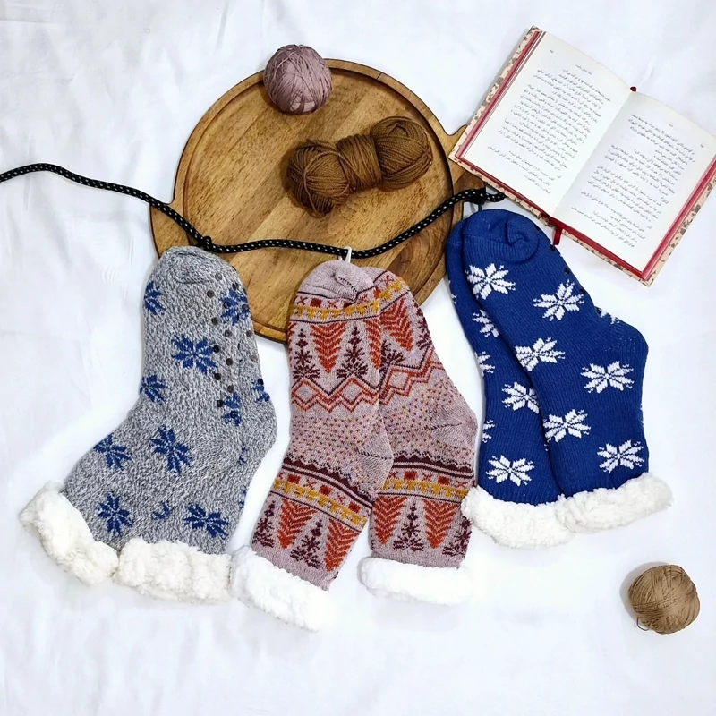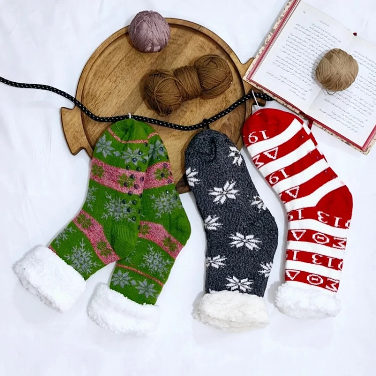 جوراب بافت خز دار زمستانی ساق بلند بسیار گرم و با کیفیت طرح های فانتزی فری سایز مناسب سایز پا 36 تا 41 بسیار زیبا و بادوام