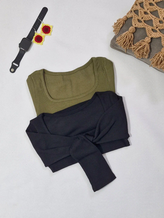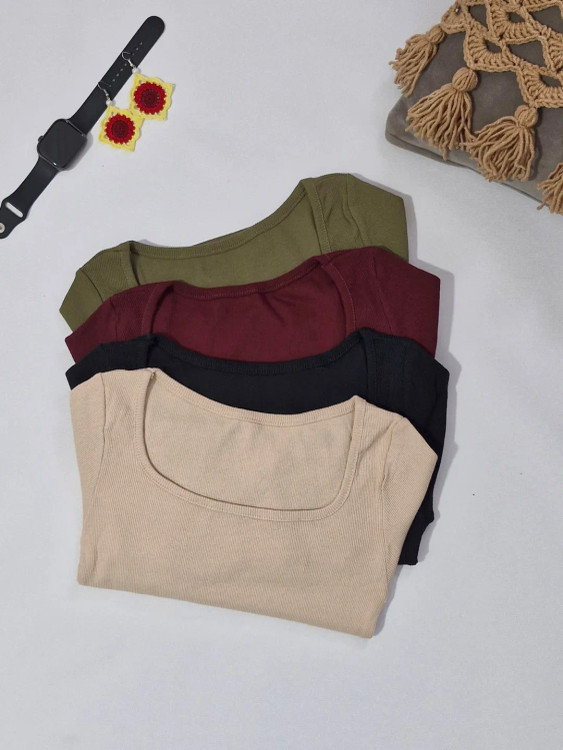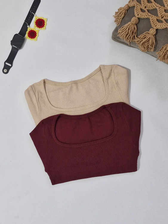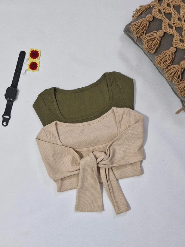 کراپ آستین بلند پاییزی یقه خشتی جنس فانریپ